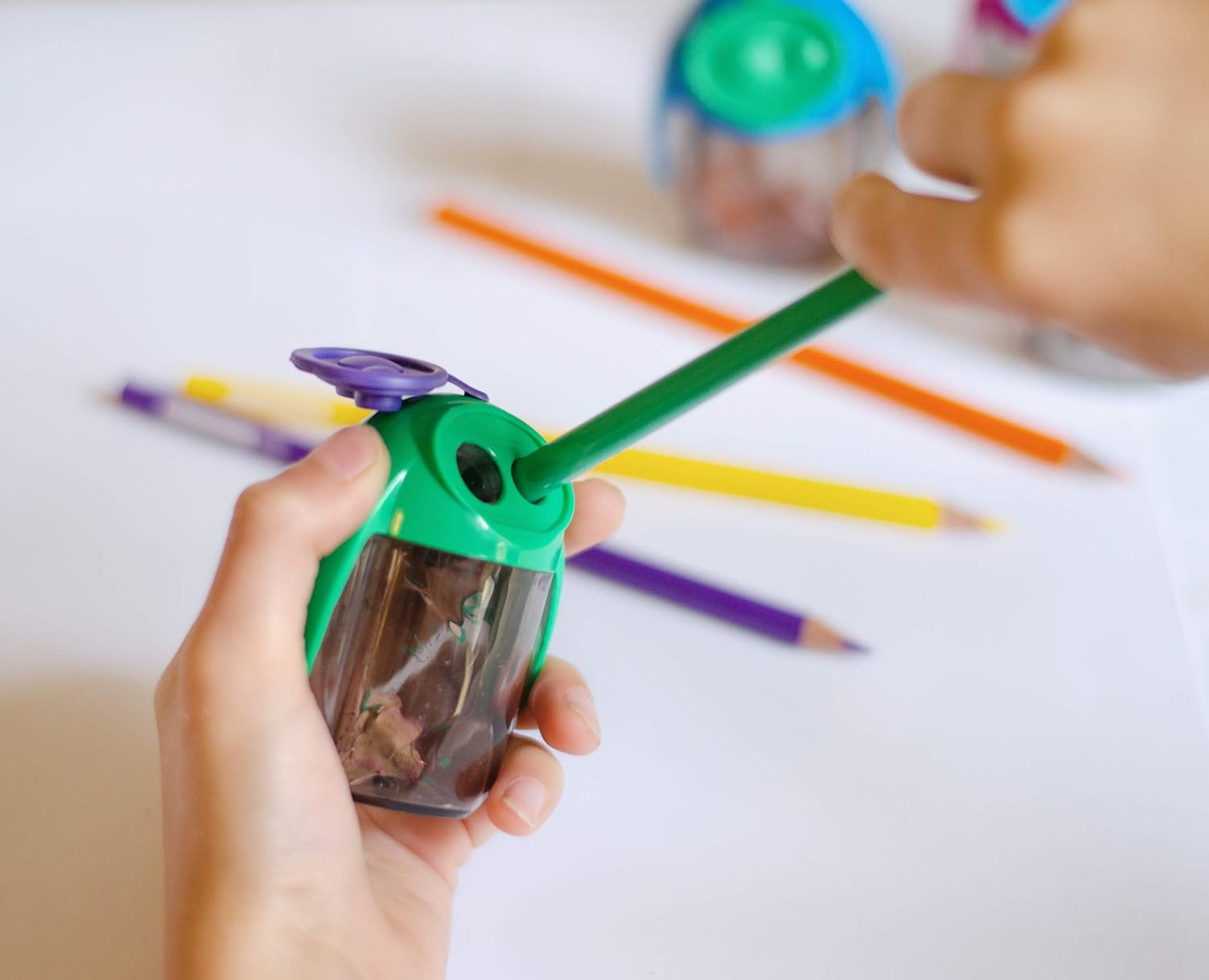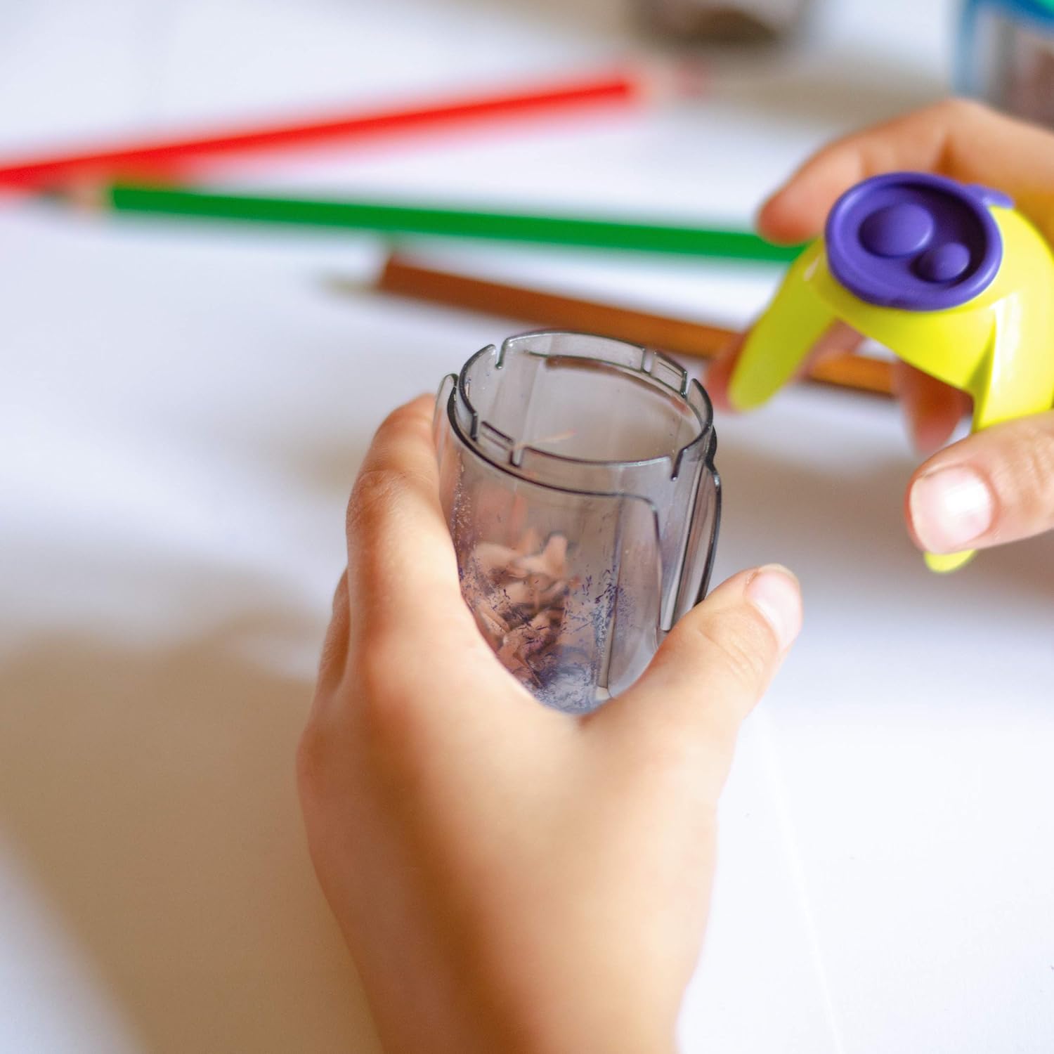 Adicione um toque de cor e praticidade ao seu espaço de trabalho com o apontador de lápis Kores MigOo com compartimento para lápis duplo. Este apontador versátil possui dois orifícios de tamanhos diferentes para acomodar lápis padrão e jumbo, sendo perfeito para todas as suas necessidades de escrita, desenho e coloração. O design compacto do apontador, disponível em cinco cores vibrantes sortidas, é ideal para guardar em um estojo ou gaveta da mesa, garantindo que esteja sempre ao alcance, seja na escola, universidade ou escritório.