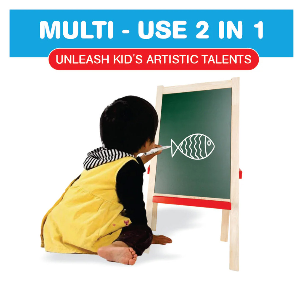 Design de dupla face: Inclui um quadro branco de um lado e um quadro-negro do outro, oferecendo opções versáteis para desenho, escrita e atividades interativas.
