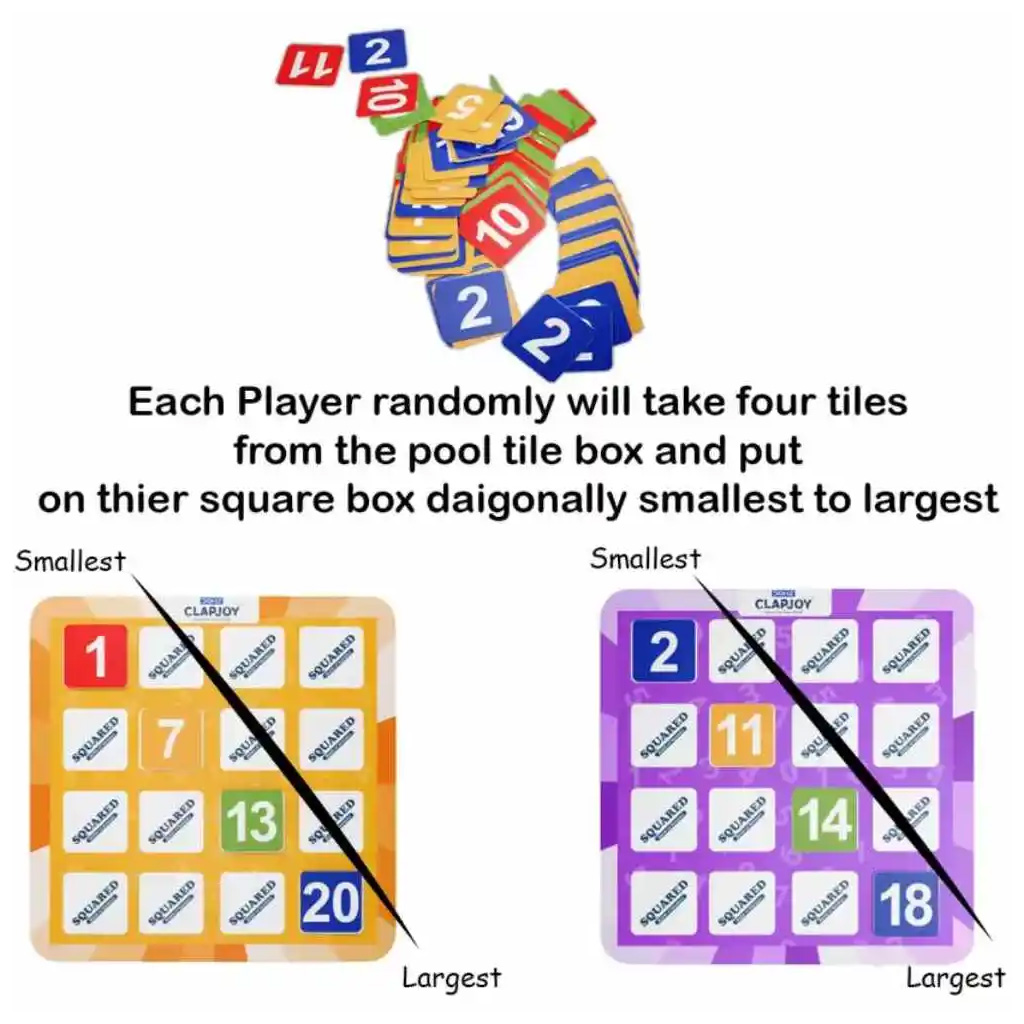 Clapjoy Squared é um emocionante jogo de tabuleiro estratégico com números, projetado para 2 a 4 jogadores , sendo perfeito para crianças, adultos e noites de jogos em família . Este jogo combina matemática, lógica e estratégia para criar uma experiência divertida e educativa para jogadores de todas as idades.