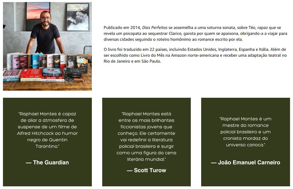 A capacidade do autor de explorar uma psique doentia é impressionante - e o mergulho psicológico não impede que o livro siga um ritmo eletrizante, digno dos melhores thrillers da atualidade. Dias perfeitos tem clima sombrio e claustrofóbico, personagens em tensão permanente e diálogos afiados. Angustiante e repleto de reviravoltas, o livro é uma história de amor obsessivo e paranoico que consolida Raphael Montes como uma das mais gratas surpresas da literatura brasileira.