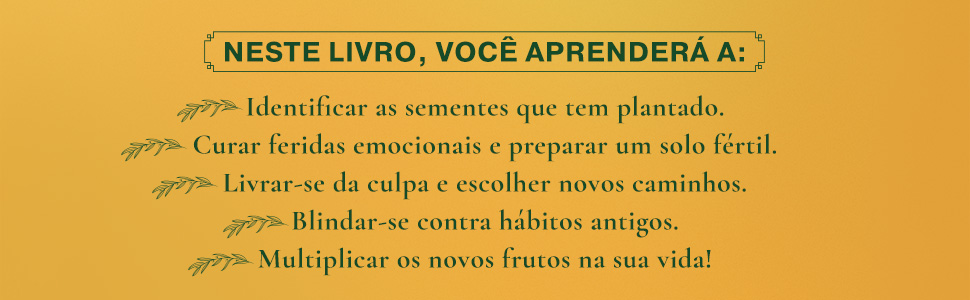 Aqui você será guiado para transformar o seu caráter, mudar a sua jornada e viver a vida plena e abundante que merece. Então é hora de olhar para o espelho, plantar novas sementes e colher os melhores frutos que já imaginou.