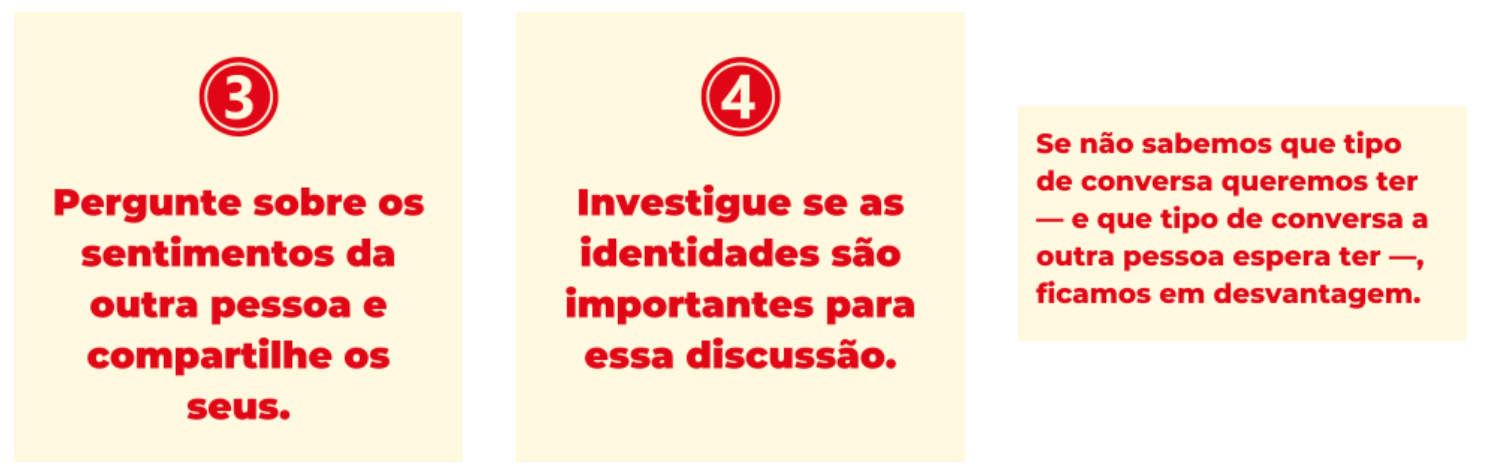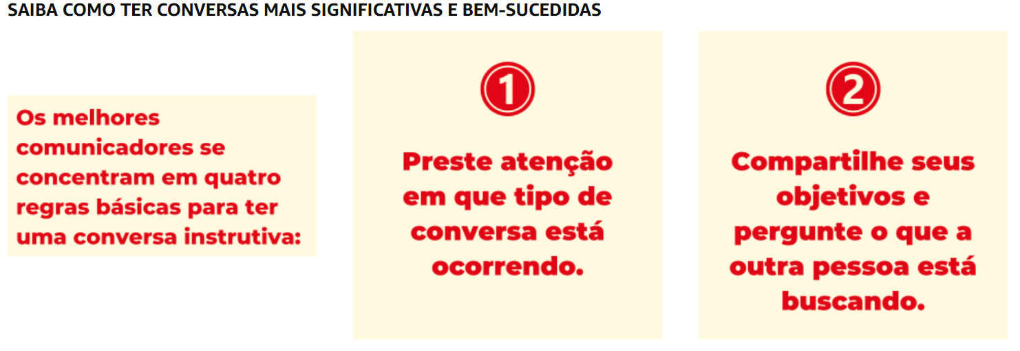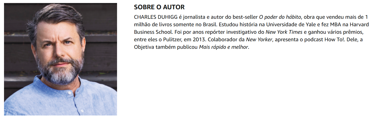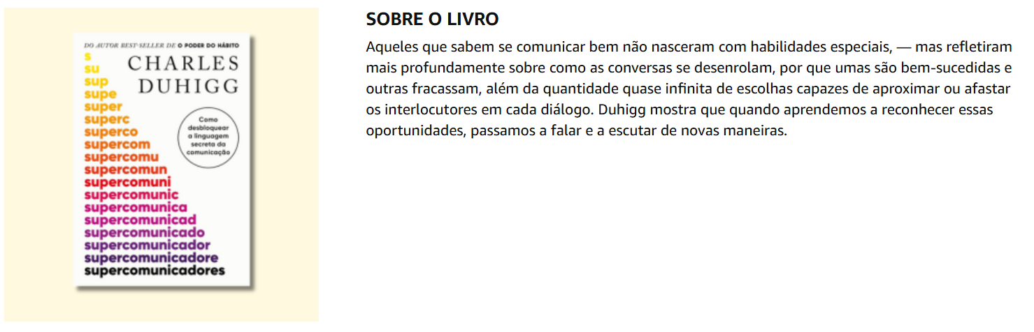 Duhigg mostra quais pequenas escolhas as pessoas fazem na hora de conversar e quais habilidades são exigidas em cada tipo de comunicação (social, emocional e prática). O autor também defende que qualquer pessoa pode se tornar um “supercomunicador”. Comunicadores habilidosos, aliás, sabem fazer as perguntas certas para criar conexão e conhecem as técnicas capazes de contornar conversas difíceis ― Duhigg mostra todas elas neste livro.