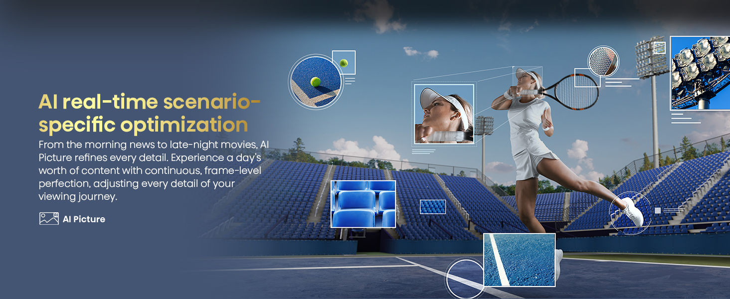 Tecnologias de imagem: Quantum Dot Color, Dolby Vision IQ, HDR10+, HLG, Filmmaker Mode, Hi-View Engine, AI Picture, MEMC;