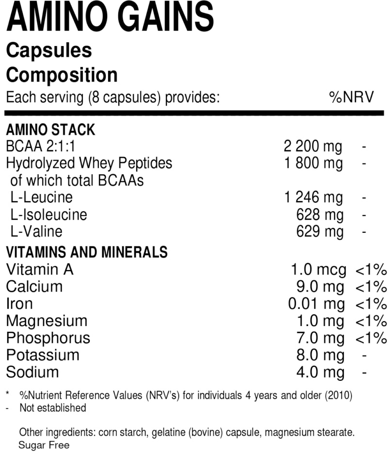 Tome 4-8 cápsulas 1-2 vezes ao dia ou com base nas suas necessidades diárias. Em dias de treino consumir antes e depois dos treinos. Em dias sem treino, consumir entre as refeições e antes de dormir.