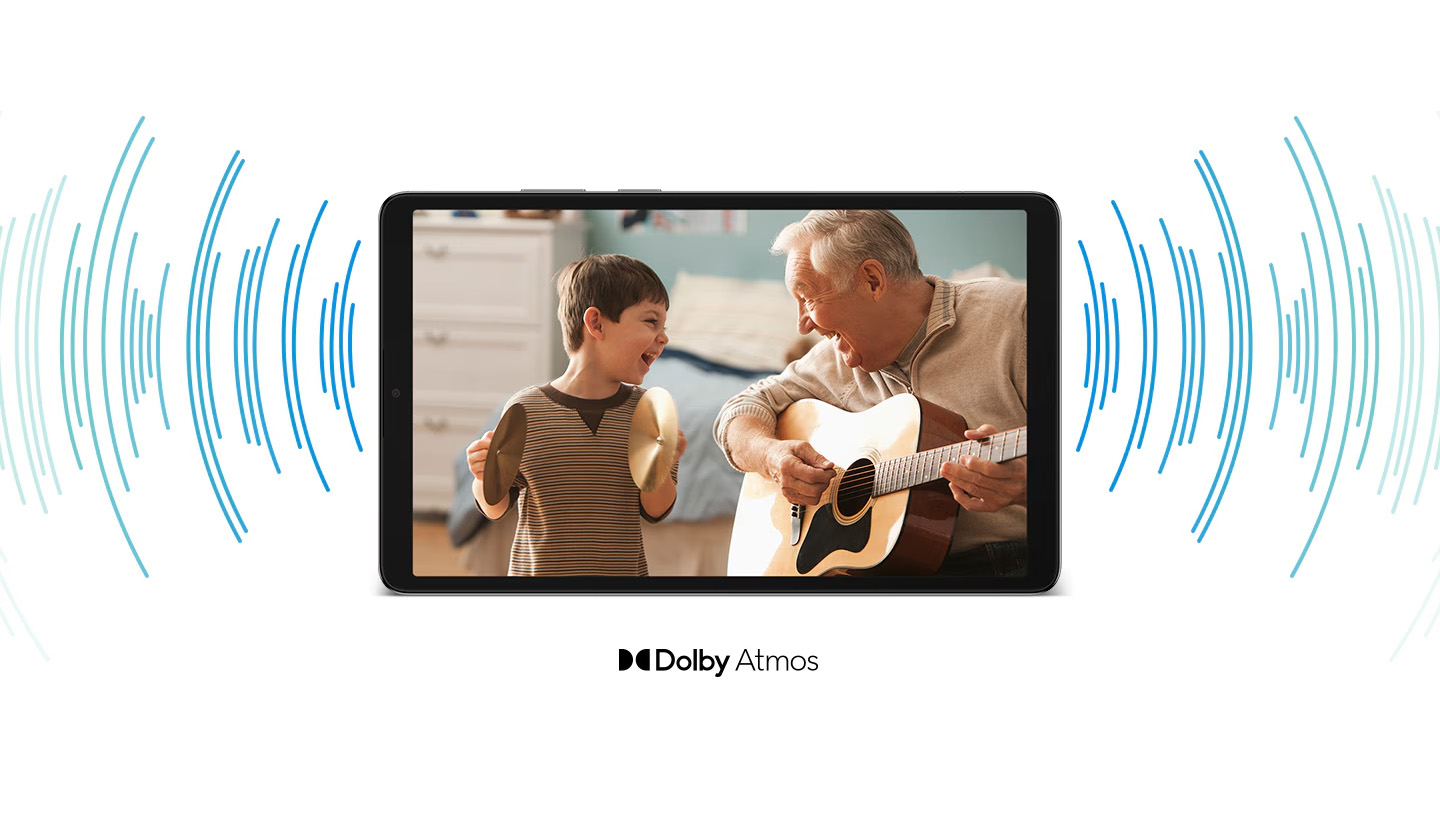 O Galaxy Tab A11 possui alto-falantes duplos com tecnologia Dolby que proporcionam uma experiência de áudio rica e multidimensional. Das suas playlists favoritas aos filmes mais recentes, o som 3D imersivo te envolve em um ambiente sonoro nítido, claro e profundamente cativante. O Galaxy Tab A11 também vem com uma entrada de áudio de 3,5 mm, para que você possa curtir seu conteúdo com fones de ouvido com fio.