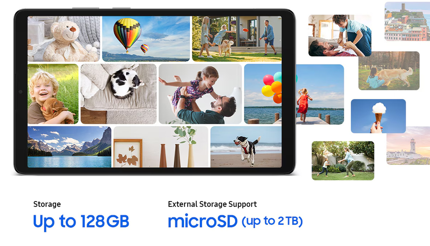 O Galaxy Tab A11 oferece ampla memória e capacidade de armazenamento. Com até 8 GB de memória, permite multitarefa rápida e fluida, enquanto 128 GB de armazenamento oferecem bastante espaço para arquivos grandes. Além disso, se necessário, você pode expandir o armazenamento para até 2 TB com um cartão microSD.