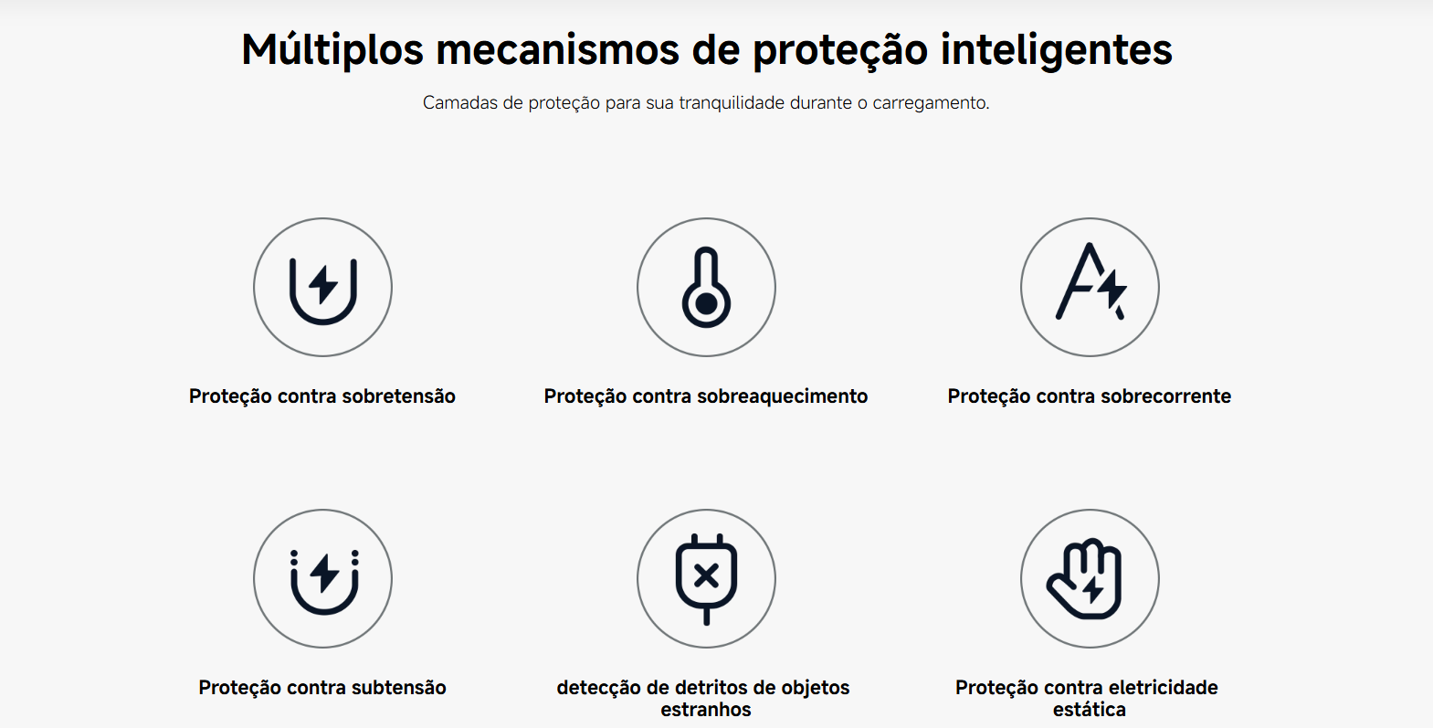 • Proteção contra raios, proteção contra sobrecarga e detecção de objetos estranhos.