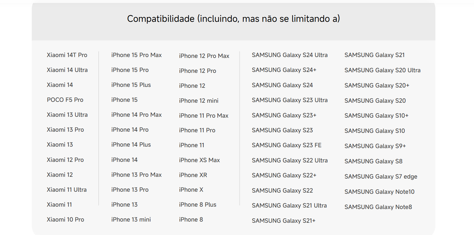 • Compatível com outros dispositivos que suportam carregamento sem fio Qi.