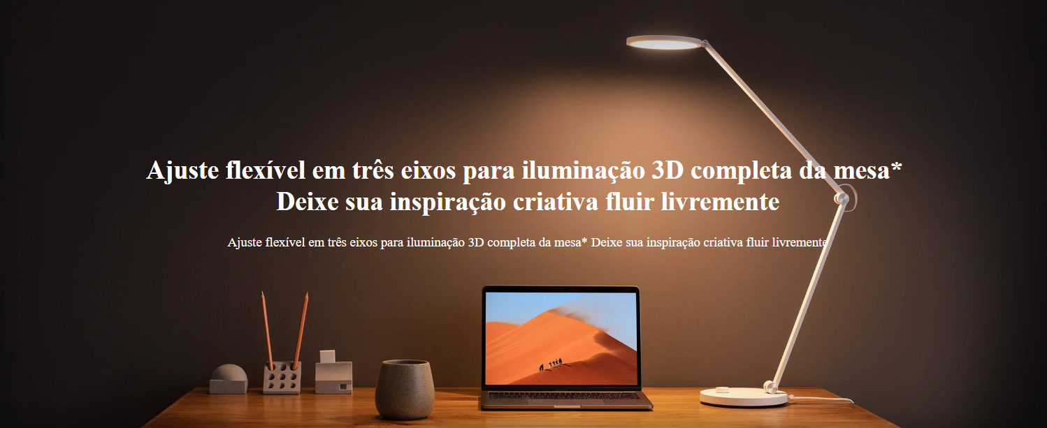 A luminária de mesa Mi Desk Lamp Pro ajusta de forma inteligente a temperatura da cor para um tom neutro (4000K) e 100% de luminosidade. Assim, mesmo após longos períodos de leitura, você não sentirá cansaço visual. O design circular da superfície luminosa, baseado na tecnologia de lâmpadas médicas sem sombras, faz com que a luz se difunda de maneira mais uniforme e sem reflexos.