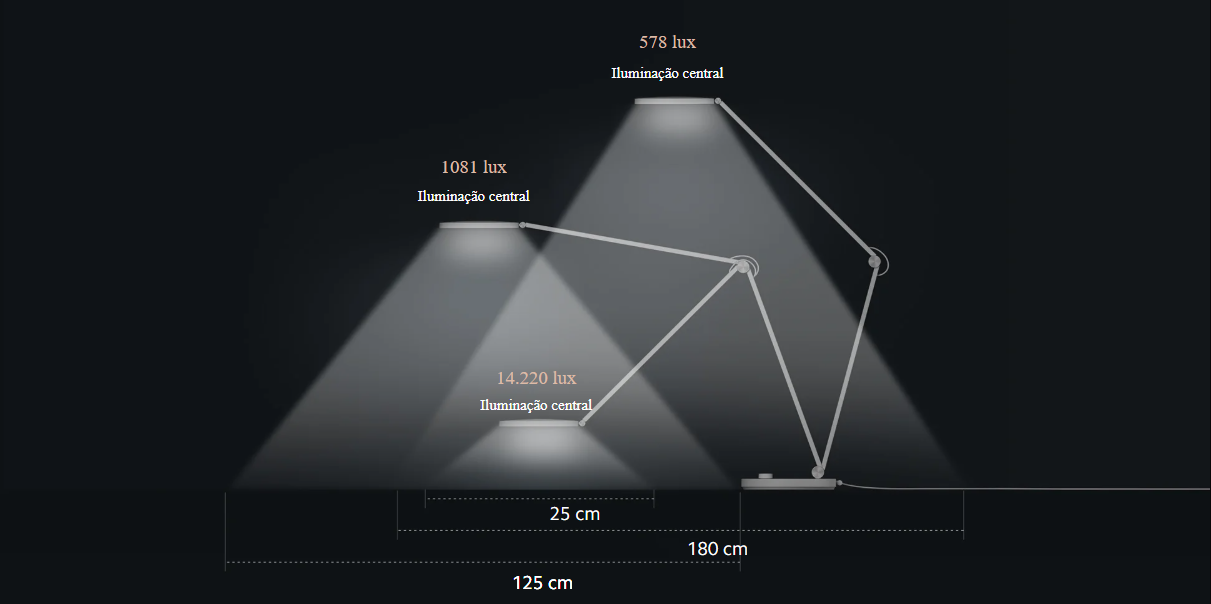 O índice de reprodução de cores 90RA oferece ajuste contínuo de temperatura de cor e brilho entre 2500K e 4800K. Os usuários podem personalizar períodos de foco ou descanso alternando entre diferentes modos de iluminação. O modo de foco adota a técnica Pomodoro, que auxilia os usuários a se tornarem mais produtivos e protege os olhos.