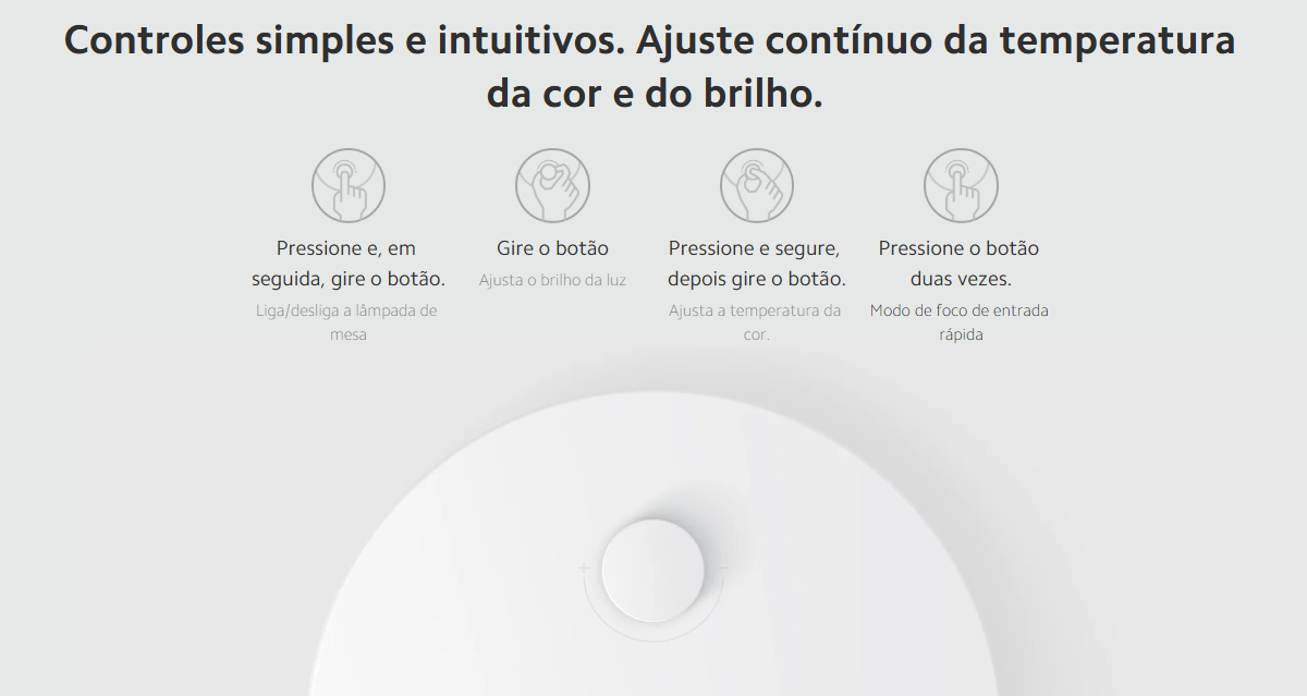 Possui tecnologia Flicker-Free e Anti Blue Light para proteger ainda mais seus olhos. Seu botão de controle simples e intuitivo permite ligar e desligar, ajustar a temperatura da cor e o brilho, tudo com um único botão.