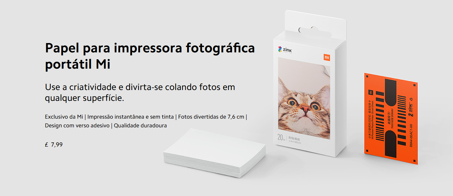 Você quer poder imprimir tudo sem problemas e onde quer que esteja, e é por isso que você tem a nova Impressora Fotográfica Portátil Xiaomi Mi. Vá além e não fique sem suporte com o novo Pacote com 20 Papel Fotográfico 2x3" para Impressora Fotográfica Portátil Xiaomi Mi. Especialmente desenvolvido para esta impressora, ele permitirá que você tire todas as fotos que deseja.