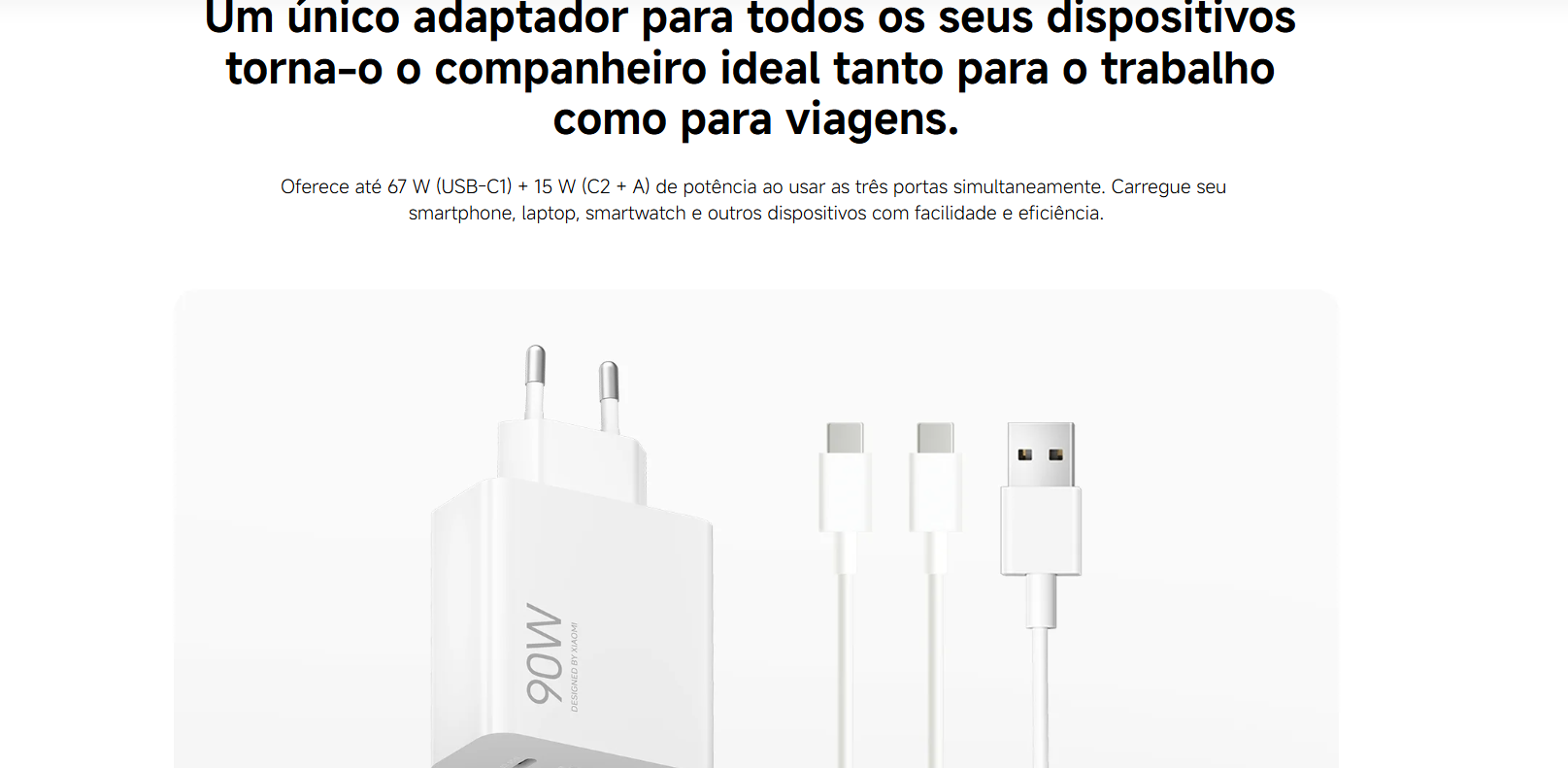 O Carregador Xiaomi HyperCharge 90W é a solução ideal para quem precisa de carregamento potente, seguro e simultâneo. Equipado com tecnologia GaN (Nitreto de Gálio), entrega mais eficiência, menor aquecimento e um design compacto sem perder desempenho.
