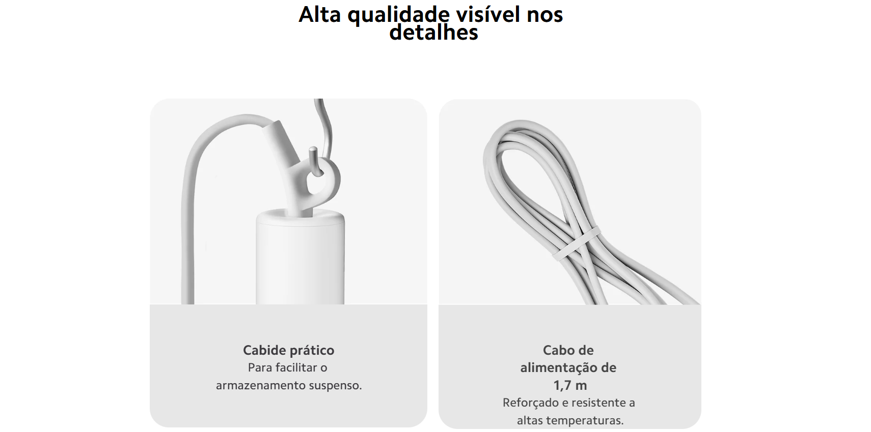 O Secador de Cabelo Xiaomi H101 combina potência, portabilidade e tecnologia moderna num design minimalista e elegante. Leve e confortável de segurar, é ideal para uso diário, viagens e rotinas rápidas.