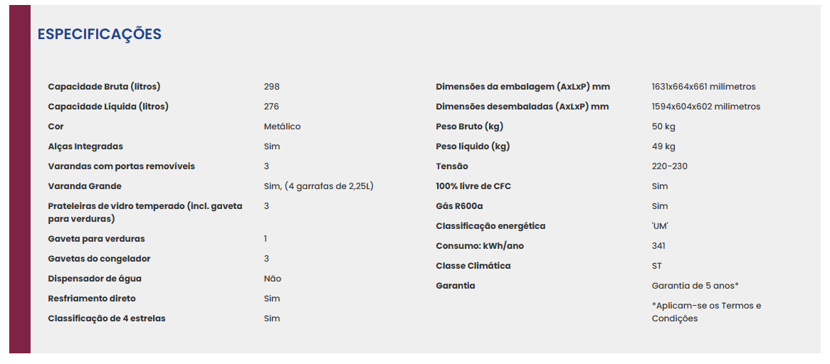 Gaveta Crisper: mantém frutas e vegetais frescos por mais tempo;