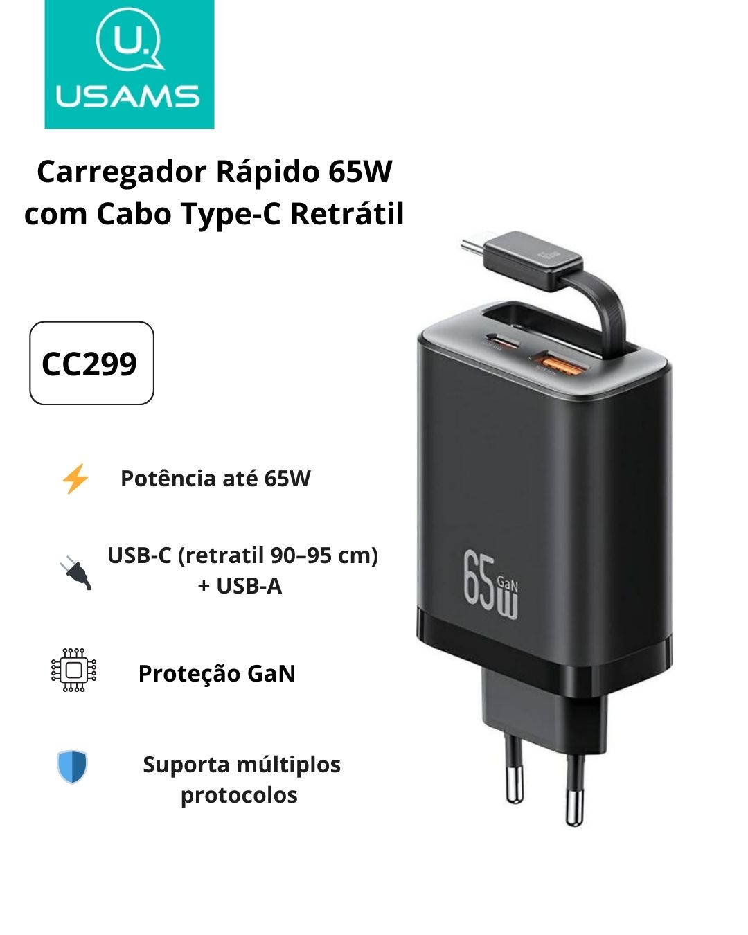 Carregador Rápido CC299 65W com Cabo Type-C Retrátil – Xiang Series
