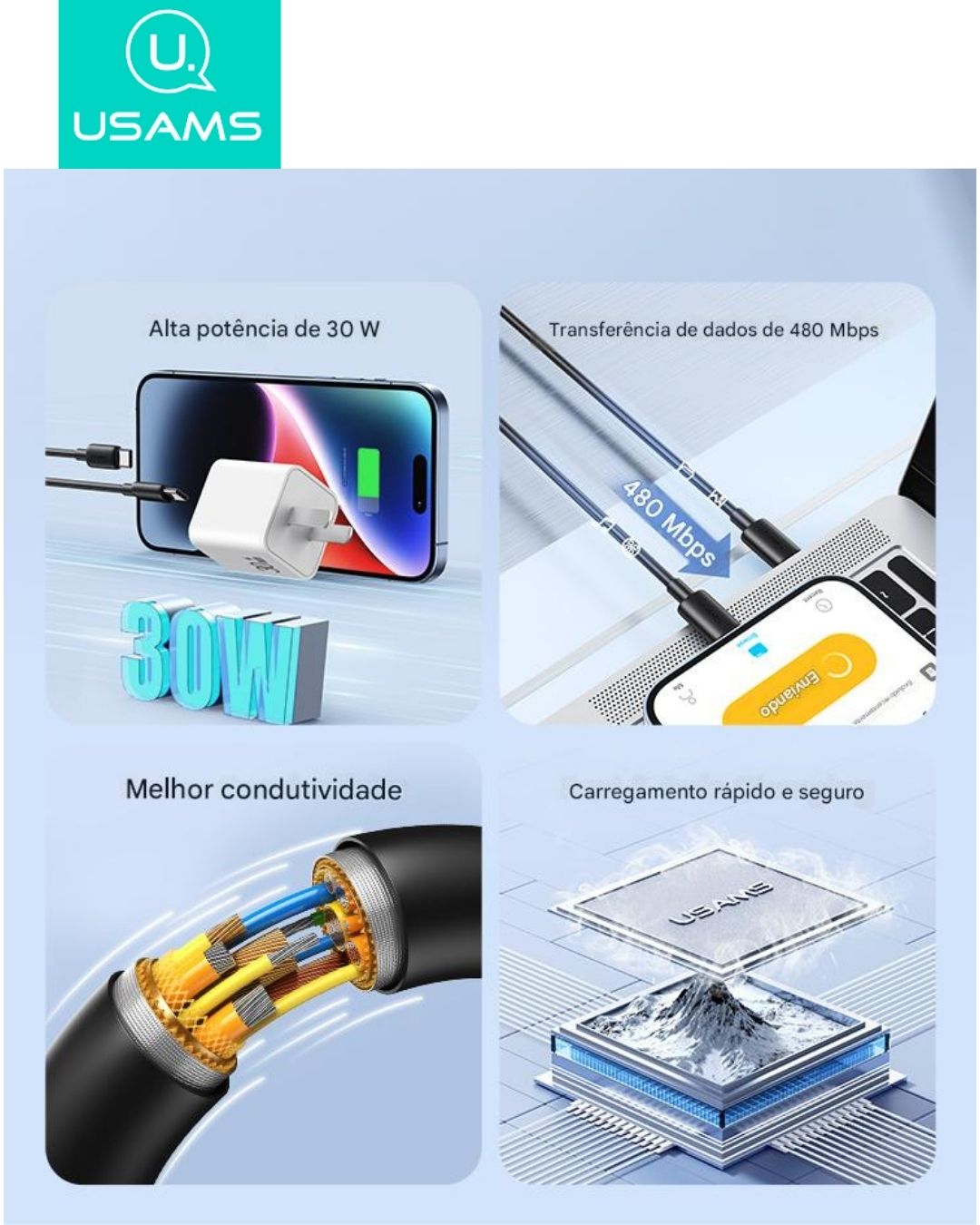 Compatibilidade: Smartphones, tablets e dispositivos USB-C;