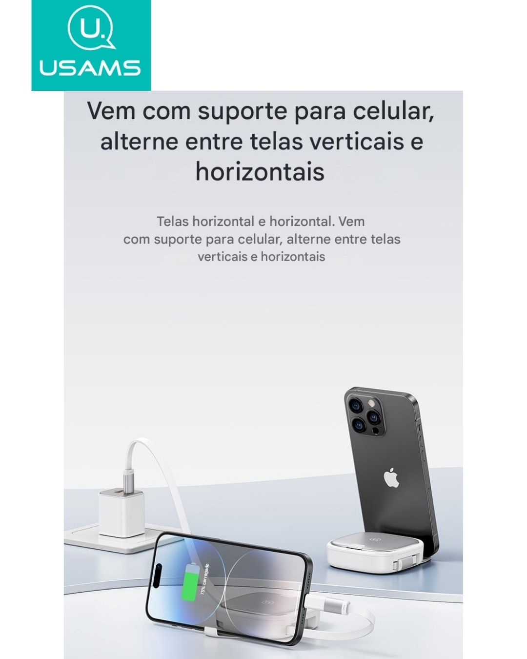 Adaptadores Lightning, USB-C e Micro USB integrados;
