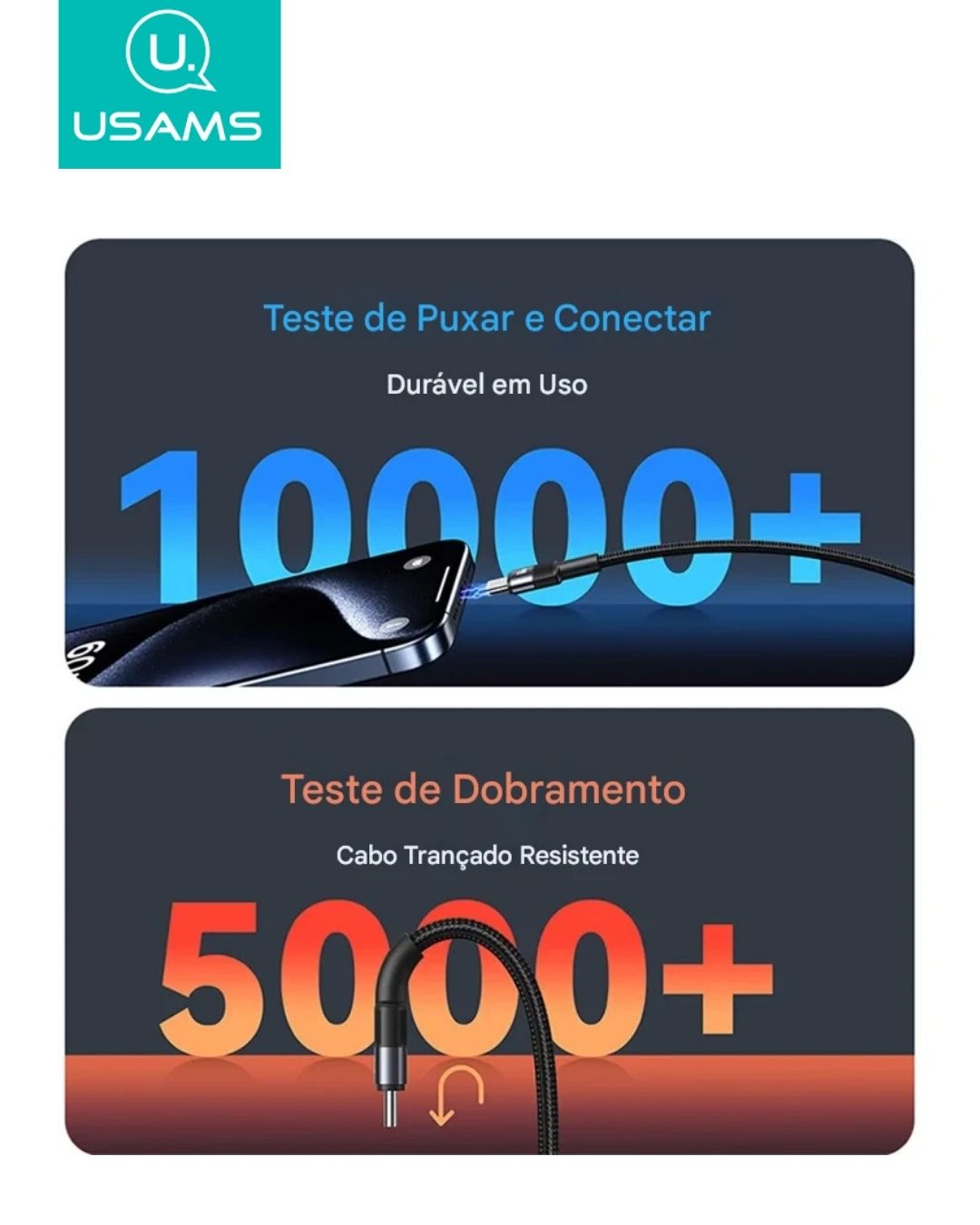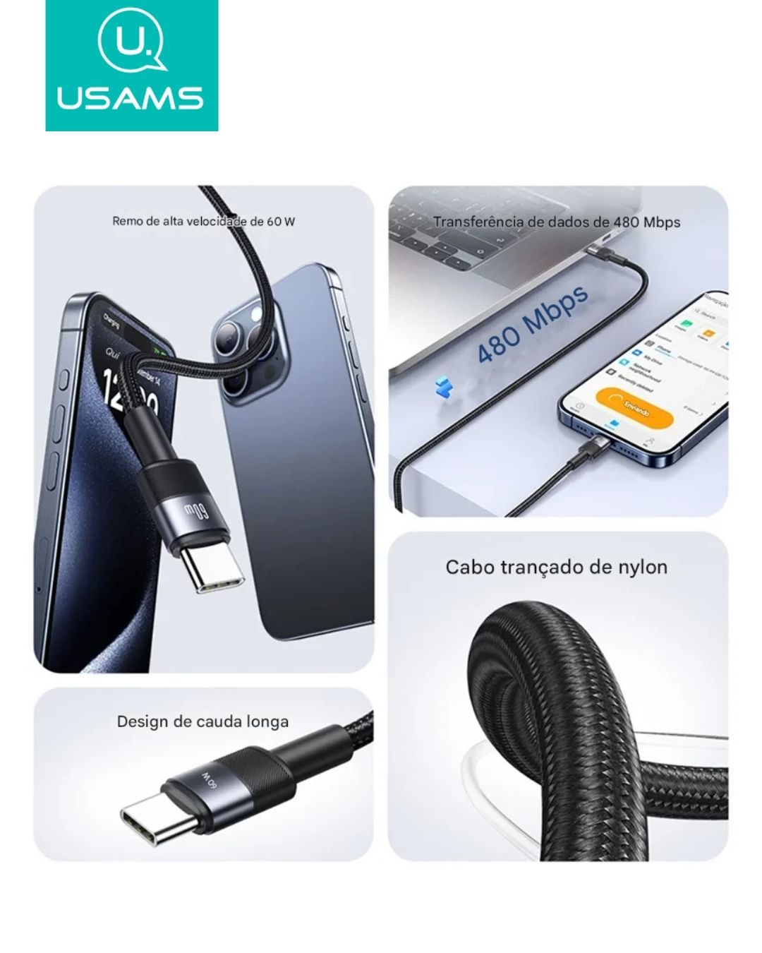 Funções: Carregamento rápido + transferência de dados;